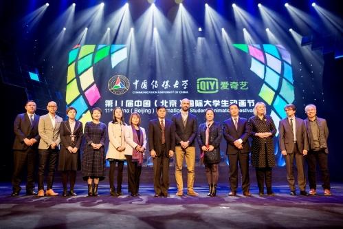 10月31日下午,第十一届中国(北京)国际大学生动画节颁奖典礼拉开了帷幕。国家新闻出版广电总局宣传管理司司长高长力先生,北京市新闻出版广电局宣传管理处副处长石东正先生,中国动画学会名誉会长、校协同创新中心主任金德龙先生,中国动画学会会长余培侠先生,文化部文化产业司动漫处范洁女士,中国文联电影艺术中心主任胡子光先生,中国电视艺术家协会卡通艺术委员会秘书长王占海先生、爱奇艺高级副总裁耿聃皓先生等出席了本次颁奖典礼。中国传媒大学党委书记陈文申教授、校长胡正荣教授、副校长廖祥忠教授、艺术学部学部长段鹏教授、艺术学部党委书记彭文祥教授、动画与数字艺术学院院长黄心渊教授、动画与数字艺术学院路盛章教授等,日本4度动画工作室社长田中荣子女士、美国梦工厂动画公司国际拓展部总监ShelleyPage女士、尼克国际儿童频道动画制作与发展部高级总监AlexiWheeler先生等来自国际顶级动画企业的国外嘉宾,光线传媒彩条屋、有妖气、优扬文化传媒等国内知名公司,以及来自北京电影学院、北京林业大学、首都师范大学等多家高校的专家、学者,共同见证了这个激动人心的时刻。