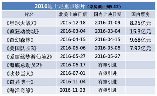 5月5日下午,习近平主席在人民大会堂会见了华特迪士尼公司董事长兼首席执行官罗伯特·艾格,罗伯特·艾格向主席保证上海迪士尼将为中国游客提供优质服务,帮助中国人民早日实现中国梦。虽然,罗伯特·艾格是以美中贸易全国委员会副主席的身份参加会见,但对迪士尼与上海迪士尼乐园来说,无疑起到了巨大的宣传作用。上海迪士尼乐园于5月7日开始试运行,受这两方面利好,A股再现“迪士尼效应”,8日迪士尼概念板块整体涨幅接近2%,31只相关概念股逆市上涨。说到娱乐产业,迪士尼真的不是针对谁的存在,迪宝宝2015年总收入高达524.65亿美元,超过了中国三大互联网巨头腾讯、阿里和百度(BAT)三家2015财年总收入之和。2016年,迪宝宝更加凶猛,单以国内市场来看,已上映的四部电影——《星球大战7:原力觉醒》、《疯狂动物城》、《奇幻森林》和《美国队长3》总票房已经超过41亿人民币(截止到5.12);上海迪士尼乐园试营业期间,也受到了许多游客“到此一游”的称赞。从电影到衍生品,再到主题乐园,迪士尼在国内的布局日渐清晰,圆耳朵老鼠的影响将渗透到娱乐生活的方方面面。今年可以说是全线产品投放的开启之年,对迪士尼来说至关重要,而从种种迹象表明,米老鼠早已经成功了一大半,抱着米妮数钱的日子就要到了。电影高歌猛进 迪士尼2016年中国内地票房有望突破60亿元以2016年的外片表现来看,迪士尼可以说是要上天的节奏。1月份上映,壕掷上亿宣传费的《星球大战7》最终票房8.25亿,表现未达预期。反倒是三四月份上映、宣传基本为零的《疯狂动物城》、《奇幻森林》,口碑票房双双爆发,长耳朵警官更是享受到了延档两周的国内户口待遇。2016年已上映迪士尼影片及有望引进的影片5月6日《美国队长3》中美同步上映,中国内地首周报收6.2亿,最终票房有望达到15亿。截止到5月12日,四部迪士尼作品的总票房已经超过41亿。迪宝宝的后续作品票房能量依然不容小觑,奇幻大片《爱丽丝梦游仙境2:镜中奇遇记》已经定档,《奇异博士》、《海底总动员2:寻找多莉》、《吹梦巨人》与《海洋奇缘》等卖相不俗的大片也有望年内引进,保守估计迪士尼2016年中国内地票房有望突破60亿元。倘若能够达到10亿美元(约合人民币65亿元),对于迪士尼,以及所有好莱坞电影公司来说将会是一个里程碑的数字。上海迪士尼乐园开园在即 米老鼠不走东京迪士尼老路10亿美元,看上去是个很巨大的数字,但电影业务收入向来不是迪士尼收入的大头。去年,迪士尼电影业务的收入为73.66亿美元,只占到迪士尼整个收入的14%。在迪士尼的版图中,收入前两名的业务是媒体网络和迪士尼乐园,两者2015年的收入分别为232.64亿美元和161.62亿美元。然而在中国内地,迪士尼最赚钱的两块业务尚处于起步阶段。迪士尼视界电视盒子2015年12月,迪士尼与阿里巴巴合作推出了一款名为迪士尼视界(Disney Life)的电视盒子,消费者可以在原有天猫魔盒的基础内容上,享受迪士尼众多的,包括电影、动画、音乐在内的娱乐资源;消费者还可以直接使用迪士尼视界购物,并且可以购买上海和香港迪士尼乐园门票以及其他旅游产品。但是在推出不到三个月的时间后,迪士尼视界进入了无限期的维护中。迪士尼在媒体网络的布局上,遭遇了此路不通的困境。相比之下,上海迪士尼度假区项目的推进则顺风顺水。目前,包含上海迪士尼乐园在内,世界上只有6个迪士尼乐园,虽然2015年迪宝宝的乐园收入高达161.62亿美元,但已经有两家乐园进入亏损状态,去年香港迪士尼乐园净亏1.48亿港元,巴黎迪士尼乐园17年中来仅2年盈利,那迪宝宝投资50亿美元兴建上海迪士尼乐园又是为那般呢?因为即便是香港、巴黎的乐园亏损,美国本土的洛杉矶、奥兰多以及日本东京的迪士尼乐园都大赚特赚,利润达到10亿美元级。而东京的迪士尼乐园采取的是许可经营模式,由华特迪士尼公司将迪士尼的相关知识产权许可给日本OLC公司,乐园的日常经营由OLC公司负责,迪士尼公司不能直接参与到项目的运营管理,每年有一定比例的许可费收入,权益也大多数掌握在日方手中。说白了就是迪宝宝只能拿IP许可费,大头都让日本公司拿了。上海迪士尼乐园属于合资模式,由国有企业申迪集团与华特迪士尼公司共同投资、建设和运营,共同承担项目的收益和风险。3月28日,上海迪士尼乐园正式出售门票,当天仅在阿里旅行平台上就卖出了4.8万张门票,内地消费者的热情可见一斑。如果按照每张票400元的均价计算,销售额近2000万元。曾有业内人士保守预测,上海迪士尼乐园第一年客流量为“1000万人次”,但是相对于庞大的中国市场,预计第一年可以轻松超过1000万人次,只门票收入一项即有望达到40亿元,而其他园内消费将超过200亿元。在巨大的数字面前,迪宝宝恐怕不想重走东京迪士尼的老路。衍生品立体贩卖 乐园、直营和授权全面开花迪士尼乐园的园内消费主要由衍生品与餐饮构成,但园内的衍生品与园外的衍生品几乎完全不同。根据迪士尼提供的数据,上海迪士尼乐园中拥有超过7000种商品,其中大部分都是上海迪士尼乐园的独家商品,旨在提升乐园的体验,与位于上海陆家嘴的迪士尼旗舰店的重合率只有2%。如果6月16日——上海迪士尼乐园开园当日,你兴冲冲跑去上海迪士尼乐园购买美国队长的手办,恐怕只能是扑一场空。“我们乐园商店主要是以我们乐园