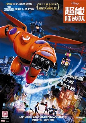 《超能陆战队》海报深圳晚报记者 李京蔚在经历春节档各色中式“银幕大菜”之后,来一盘西式甜品,或许可以给观众带来新鲜的口感。而且这道甜品可不容轻视——迪士尼与漫威的合体作品《超能陆战队》,将于2月28日全国上映,这可是奥斯卡奖刚刚评选出来的最佳动画片哦!前日,记者来到深圳海岸影城提前看片。虽然电影名字听来很炫酷,画面风格却与过去那些带着金属质感硬邦邦的超级英雄完全不同,拯救世界的是一个腿很短、软绵绵、喜欢抱抱的白乎乎充气医疗机器人。看完影片,有小朋友被萌得受不了:“2015最强萌物已经诞生,好想在他们生活的城市住一辈子啊!”画风太炫 特效很有真实感影片的剧情很简单:在未来世界的超级都市旧京山,有一位热爱发明创造的天才少年小宏,本来阳光调皮的他在一场大火中失去了哥哥,而哥哥生前留下的治疗型机器人大白则成为安慰他的唯一伙伴。随后小宏发现有坏人利用他的发明搞破坏,于是小宏和大白变身战斗形态,拯救世界。因为剧情简单,所以《超能陆战队》把很大精力放在画面上。大量场景的特效光影闪瞎眼,绝对是CG动画领域的又一大飞跃!萌物太暖 为你催泪治愈心灵大白作为哥哥的遗物,间接连结着兄弟的情谊,同时也有着自己的生命,是个真心陪伴你的朋友。于是大白的熊抱和陪伴,成就了影片无尽的萌点和泪点,让人们想起野比大雄身边的哆啦A梦、教授帕克的忠犬八公、小嗝嗝身边的无牙仔……呆萌可爱又逗比。最后的一句“I will always with you!”又是那么催泪,开年萌物,非大白莫属!