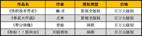 快看漫画的部分IP授权