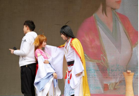 知名coser小小白&小柔实力COS狐妖主角东方月初和涂山红红,不仅为情侣们献上祝福,还在相思树许愿闯关环节,顺利闯过三关,上演了树咚,慕情花墙下拥佳人入怀等亲密动作,引发全场尖叫,而现场的苏苏、丐帮、天香等学生coser们更是激动不已,争相求偶像签名合照,气氛热闹非常。