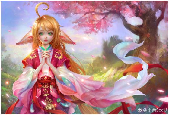 充满才华的小柔,还是一位插画师,用一张天刀版涂山苏苏的插画,作为307女生节送给粉丝们的礼物