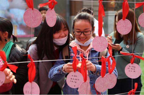 用许愿牌写下愿望还不够,爱要大声说出来,情侣现场讲解爱情点滴,互诉情意。