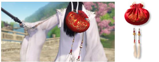 按照天刀游戏内背饰“福云来”还原制作的手工刺绣香包↑