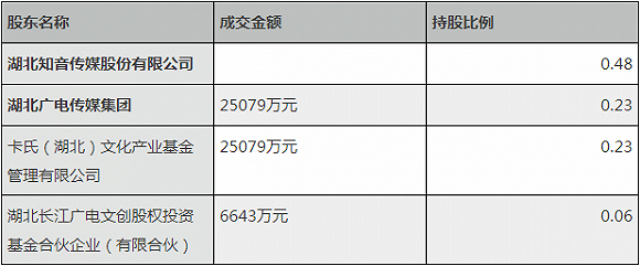 据了解,湖北广电传媒集团、卡氏(湖北)文化产业基金和湖北广电文创股权投资基金分别出资25079万元、25079万元、6543万元,对《知音漫客》持股比例分别为23%、23%、6%,三家总计持股52%。