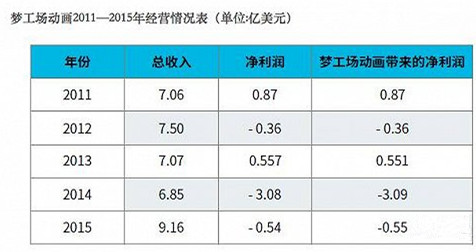 梦工场动画不像迪士尼有成熟的产业链和变现渠道,更依赖一部电影的电影的成败。结果2014年到2015年,制作成本1.4亿,全球票房2.7亿的《天才眼镜狗》,以及制作成本1.4亿,全球票房3亿的《守护者联盟》都拖累了梦工场动画的业绩。