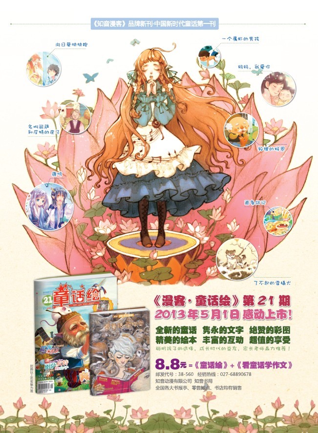 《知音漫客》品牌新刊,《漫客?童话绘》2013年总第21期:妈妈,我爱你!更多故事,更多乐趣!5月1日温馨上市。随刊附赠《看童话学作文》副刊112P全彩!精彩不容错过!精彩预告:《名叫丽萨和皮特的房子》 文/张小倩 图/小小梅“真是一座漂亮的房子。”这是丽萨对皮特说的第一句话。皮特说了句谢谢,只可惜丽萨听不见。皮特不是人。这句话当然不是用来骂人的。事实上,皮特是房灵,而所谓房灵,顾名思义就是守护房屋的精灵。皮特不知道这个世上还有多少房灵存在,因为房灵从建成之日起就只能在房屋附近行动,而这附近的房灵早已消失了。《向日葵快快跑》 文/绯帘夜 图/星茧“渴死了。”窗外好像传来了什么声音。正在做数学题的阿健探头看了看,连半个人影也没有。可等他刚在草稿纸上列了个算式,那个声音又出现了,而且变得更响、更清晰了:“渴死我了。”“谁呀?”阿健索性丢下笔走出去。他房间窗户下是一小片空地,长着乱七八糟的杂草和一株不知名的植物,被正午的太阳烤得蔫头巴脑。 [web_page]《狐狸的报恩》 文/茉莉女巫 图/橘兔小狐狸轻轻叹了一口气:“我的妈妈过世了,我想投奔山沟那边的姨妈。半路上碰到山魈,他把我抓了起来。如果没有您的帮助,我这辈子可能就失去自由了。”金老爹叹了口气,小狐狸真可怜啊。他下了一碗馄饨,递到小狐狸手上。小狐狸狼吞虎咽地吃起来,吃到一半,它把头埋在碗里,眼泪吧嗒吧嗒地掉进热汤里。《肥探白皮猪·真假嫌疑犯》 文/东琪 图/狄萱月黑风高夜,猎狗警官正值班巡逻,突然被一高亢的叫声吓了一跳——“抓贼啊!”不远处,他看到一团黑影正从旁边的豪宅里翻墙出来,黑影窜过围墙之后开始加速。直觉让猎狗意识到这一定是贼,他拔腿便追!“该死的小偷,快抓住他!”巍巍颤从豪宅里追出来的贵宾犬老爷上气不接下气地喊着,在他身旁的贵夫人一边小心地扶着丈夫,一边安慰:“钱财乃身外物,你走慢点儿啊!”《少年空侠Ⅱ》第10话 文/两色风景 图/古戈力古里古拉果子露出门时,对她说:“给你个惊喜。”以果子露保守的性格,本来是不会接受这种胡来的夜游的,但她还是鬼使神差地上了呱啦啦的背。呱啦啦一跑起来——哗,果子露本能地抱住了古里古的腰。三分钟后,她的心情从紧张变成了兴奋,月色下的狂奔如同一场冒险,她还是第一次尝到这种滋味。