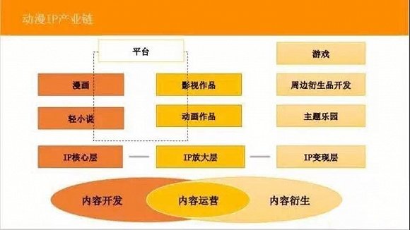 回顾国产动画市场在内容上的发展,我们发现:国产动漫市场商业化运营始终重点围绕IP内容的全产业链进行,国产动画“IP创富论”运作理念盛行。至于原因其实也不难解释,优质IP内容为国产动画产业链上游,在深度挖掘IP价值并将其视觉化后,以视频平台的强运营策略盘活IP加工后的内容,再通过垂直用户的粉丝经济实现最终商业增值。