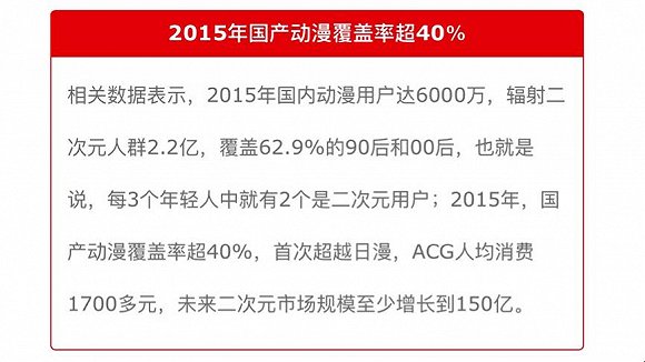 2015年,国产动漫异军突起,以超40%的覆盖率,首次超越日漫,打破了日漫与低幼动漫长期垄断国内动漫市场的怪像,日益成为中国动漫市场上的潜力爆款,不止如此,国产动漫已不再是低龄人群的“专属”,大批80、90后社会主流年轻人群也成为其拥趸者。面对这一新蓝海,国内各主流视频网站纷纷跑马圈地,国产动漫已经成为国内各大视频网站继电视剧、电影和综艺节目之后的第四大内容版块。一直以来,腾讯视频在布局日漫和低幼国漫的同时大力推广国漫,助力国漫快步发展。在2015年,其国漫覆盖率为85%,实现了覆盖和流量的全网第一;2016年,腾讯视频国漫布局将重点围绕顶级IP展开,目前看来,一大波国漫新番都在腾讯视频平台上火热更新着。精准把控用户行为推优质国漫播放与弹幕“共振”中国动漫产业的进步不单单是数量的增加,国漫品质也在大幅提升,而如何在大批优质动漫中脱颖而出,成为了业内外人士不得不思考的问题,在解决这一问题上,拥有互联网基因的腾讯视频可谓掌握绝大的主动权。其依托强大的用户基础与渠道以及大数据支持,精准把控用户习惯、观看习惯、收视习惯等各方因素,能够提出更适合互联网播出的方式及整合推广模式,加之利用独家幕后花絮、片花、主题曲MV以及动漫人物恶搞视频等多元内容吸引用户,由其“操盘”的国漫网络播放量攀高指数大幅上涨,类似《画江湖之灵主》1.6亿、《中国惊奇先生》3亿、《大力金刚》5.8亿、《我叫白小飞》6亿等高播放量的站内热漫频频涌现。不仅如此,腾讯视频开设的弹幕互动功能,进一步增强了用户与作品的互动黏性,二次元观众的互动热情持续高涨,《我叫白小飞》《王牌御史》《中国惊奇先生》《画江湖之灵主》《狐妖小红娘》等短小精悍的优质动漫弹幕数均达数百万级,腾讯视频垂直细分领域下的动漫频道呈现高点击与高互动的观看场景。值得一提的是,在近期,包括《太乙仙魔录》、《我的吸血鬼男友》、《女娲成长日记》、秦时明月姐妹篇《天行九歌》、《勇者大冒险2》、《双月之城》、《超神学院4》等精品国漫将陆续上线腾讯视频,以满足平台用户的多元化观看需求。打通优质IP全产业链 稳固国漫第一平台地位当前,在网络文学的支援下,国漫已经不再缺少优秀内容供给,如何为庞大的读者群体寻找一个关键的“泄洪口”成为了时下关注热点。在此基础上,2016年,腾讯视频进一步布局国漫市场,覆盖二次元人群,顺应IP全产业链发展趋势,助力国漫进入黄金时代,特别推出“青春国漫剧场”战略。在全面释放顶级IP价值的同时,集结醉 美 燃创四季差异化内容热漫,推出不同用户群喜欢的不同风格作品,不仅有包括《斗破苍穹》《全职高手》在内的颇受漫迷关注、动画化呼声极高的16部顶级IP国漫作品,还推出了包括《暴走漫画》全新系列、《画江湖》最新系列、拟人萌娘《全民女朋友》等各种不同类型的力作,旨在“看国漫只在腾讯视频”品牌形成后,通过一系列措施使其产生的效应得到进一步的深化和拓展,使品牌在“二次元”受众心目中的地位得到不断加强,从而推动整个动漫行业的发展。此外,在人人都谈“全产业链布局”的年代,腾讯视频着眼于IP火爆下的协同效应,基于优质的动漫内容和策略点燃中国动漫产业的爆点,打造“IP裂变增值平台”、“播放营销平台”、“商业共赢平台”,全方位助力国漫产业链和二次元泛娱乐产业链的发展。 2016年,“青春国漫剧场”放眼文学、漫画、游戏、影视全平台IP,和海内外最有影响力、最具潜力的动漫合作伙伴一起,撷取王冠上的宝石精品IP,及具有潜力的“沧海遗珠”型IP,合力将IP动画化,助力中国动漫时代前进,而腾讯视频自身的平台优势,将再次为IP动画化环节扩大影响力。通过在数量上、类型上以及精品化上的潜心耕耘,最终实现由2015年国漫覆盖率85%到2016年国漫覆盖率95%,夯实“国漫第一平台”的领先地位。