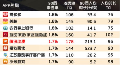 去年底,QuestMobile发布了“90后常用APP榜单”,动漫APP中仅有两家上榜,腾讯动漫就是其一。而且其用户曲线稳健,显示出了其坚实的核心用户保有量。在人均使用时长上,腾讯动漫又是动漫APP中最好的,比第二名足足多出了一个小时,这实际上意味着,腾讯动漫对优质内容的推进已卓具成效,而腾讯动漫用户的阅读习惯,也已经稳固形成,构成了其基数庞大的核心用户群。