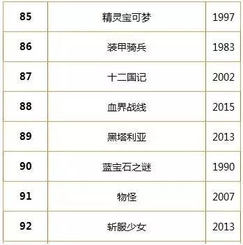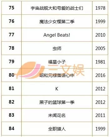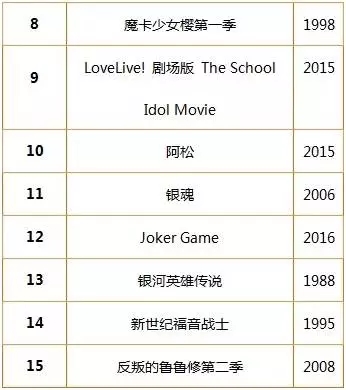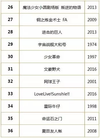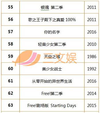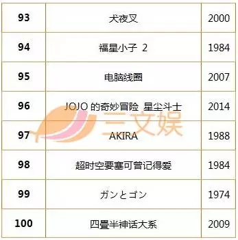 “动画100”BEST 排名