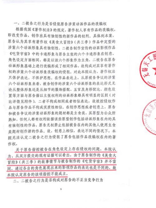 5月5日,动画电影《吃货宇宙》被诉著作权案经北京市海淀区人民法院判决终于尘埃落定,原告方易动传媒的全部诉讼请求被驳回,判决结果显示《吃货宇宙》并未侵犯原告作品的改编权,亦不构成不正当竞争行为。同时,《吃货宇宙》的出品方无锡天工影业有限公司(天工影业)和北京圣壹门文化传播有限公司(圣壹门)也就最近网络上出现的相关不实信息联合发出声明,借此呼吁所有电影从业者一起维护电影市场的良好环境和竞争秩序, 自身做到严律己,宽待人。