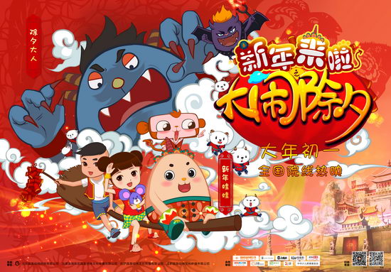 由北京国是经纬科技有限公司出品的电影《新年来啦之大闹除夕》将于大年初一(2月19日)上映。作为一部在电视荧屏上已经播放了四季的人气动画,这一次大电影版的上映,让《新年来啦》走上了《喜羊羊与灰太狼》、《熊出没》的“大屏幕之路”。画风萌宠风格喜庆的《新年来啦之大闹除夕》凭借着浓郁的年味儿,和温馨的故事,成为了假期中颇具票房竞争力的动画片。电视版动画片《新年来啦》讲述的是中国传统文化当中,关于“年兽”和“除夕”的传说故事,其中“春姑娘”、“年小弟”、和“十二生肖”等等可爱又鲜明的片中人物,共同用“爱”和“信念”最终赶走了年兽,迎来了春天。系列动画《新年来啦》无论是剧本创意、剧情设置,还是片中人物,都被确保“零暴力、无粗口”,此外在画风和情节上,也溶入了中国传统的文化与审美元素,行云流水的画风和对传统文化的传承。