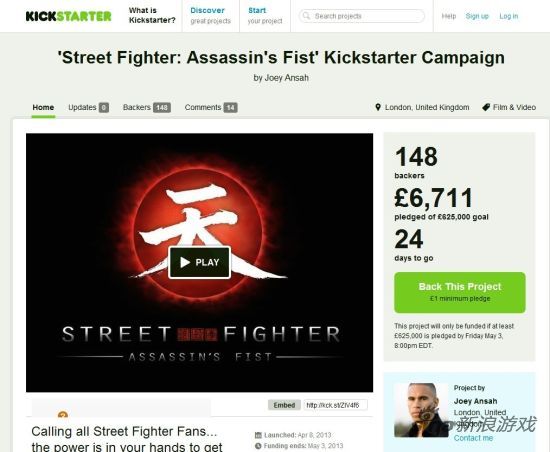 近日《街头霸王:暗杀拳》真人剧导演Joey Ansah在Kickstarter网站募集62.5万英镑真人剧拍摄资金,目前已募集到6711英镑,真人剧预定将于2013年冬天上映。《街头霸王》系列制作人小野义德曾于去年宣布,Capcom将把《街头霸王》格斗游戏搬上电视,《街头霸王:暗杀拳》将于2013年正式播出。官方的公告中写到:“这部剧集会把玩家带回游戏的标志性角色肯(Ken)和隆(Ryu)的少年时期,他们是封闭的日本中的两位传统武士。”街头霸王:暗杀拳“这两位男孩在不知情的情况下成为了古老的招式‘暗杀拳’的继承者。这部剧集将和他们一起慢慢了解他们的师傅钢拳(Gouken),以及‘暗杀拳’背后的凄惨的故事。难道他们的命运早已被设定?或者说还可以改变?”这部剧集将由好莱坞著名演员Joey Ansah参与制作,他是一位格斗游戏的超级粉丝,正是因为他此前自制的小短片《街头霸王:传承(Street Fighter: Legacy)》在网上点击率超高(超过800万次),才使Capcom产生了拍摄电视剧的想法。Joey Ansah说:“这部剧集将从头说起,为大家讲述肯、隆、铁拳、豪鬼背后的故事,看他们如何成长,如何冒险。”