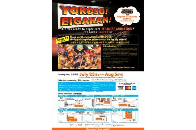 近年来,相信每一个动漫迷都体会到日本动漫行业正在越来越重视中国市场了。而如今应该也有很多动漫迷在期待夏天《航海王》最新剧场版的上映吧?近日官方宣布:本次的剧场版将会提供中文字幕和英文字幕的版本。这也是由于官方考虑到本作品在全球的人气,才特别做出的决定。对于日语不好的中国粉丝来说绝对是一大福音。而这个企划也是让外国人体验日本电影院效果的活动·“YOKOSO!EIGAKAN!”的一部分。此前在《龙珠Z 复活的“F”》、《心在呐喊》等作品当中也有过类似的尝试。而本次中国粉丝们可以在日本的电影院当中第一时间体会到最新的剧情,如果说是在日留学生或者有条件去11区的动漫迷,可千万不要错过这样的机会了。当然,提供中文字幕的并不是所有的电影院,根据官方消息,东京的新宿剧场9、t-joyPRINCE 品川;神奈川的横浜burg13、大阪的梅田burg7、京都的t-joy京都、福冈的t-joy博多将会提供这个版本,具体拍片安排可以留意各大电影院官网的动态。