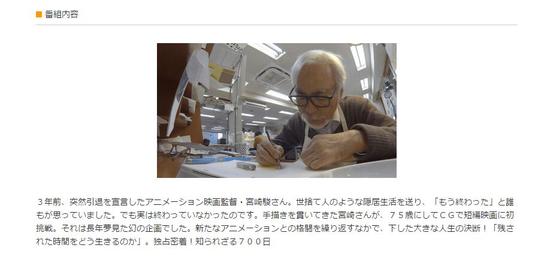 昨日,NHK播出了纪录片《永不结束之人·宫崎骏》,编导跟踪采访了两年之久,将这位大师的性格完全捕捉。在纪录片里,宫崎骏坦言希望自己能回归长篇动画制作。在纪录片中宫崎骏和御用制作人铃木敏夫交流新片制作问题,新片计划耗时三年,于2019年完成,目前已经着手准备分镜。三年前宫崎骏提到了自己的时代已经结束,从今以后会过安逸的退休生活。然而退休以后,这个动画大师却始终停不下手中的铅笔,一直在搞短片创作。宫崎骏说:“与其什么都不做的死去,不如在制作中死去的好,做点什么总比惦记着动画死强。”吉卜力工作室则表示:“只要宫崎骏监督想做,就会继续做。”据了解,这部长篇动画正在筹资和分镜阶段,目标是2019年完成。