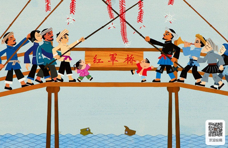 我请来美术家柯明一起创作动画电影《红军桥》。这个故事立意高、主题正,做成动画电影之后如何既不削弱主题,又好看、幽默、有新意?比如“水”,以前都是做成水波浪,专门画特技,这次我在两个化学版上画两条曲线,半透明,两条曲线前后上下移动,就有了动感。再比如“火”,剪纸片一般拍火要一张张画火,很麻烦。我注意到电话间门口的玻璃凹凸不平,这样看不见里面的人,但是又透光。在拍有火的镜头时,我们就剪出火焰图样,用两块玻璃在图样前不停拉动,火苗就动了起来。这两个小创新既增强了画面装饰性,又很有趣味。