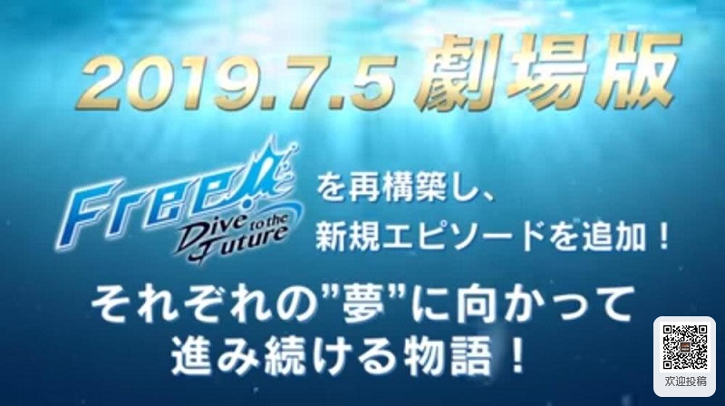 昨天(1月13日),《Free!》官方举办了特别活动“Free!-Dive to the Future-TALK&READING SPECIAL EVENT”,主役声优以及制作人员出席了本活动。在活动上官方公布了剧场版的新详情。另外,在今天(14日)下午官方还公布了剧场版的特报影像。在特报中,官方正式宣布完全新作剧场版动画将于2020年夏季在日本上映。而加入了新故事的第三季动画《Free!-Dive to the Future-》的总集篇剧场版预计将于2019年7月5日登陆岛国电影院。