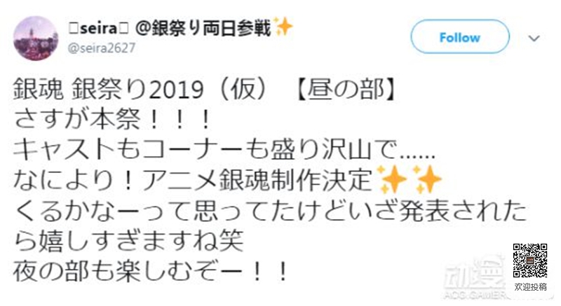 在今天(3月3日)举行的“银魂银祭2019”上官方宣布,完全新作的《银魂》动画制作决定。有关于动画的其他消息官方暂时还未公布。