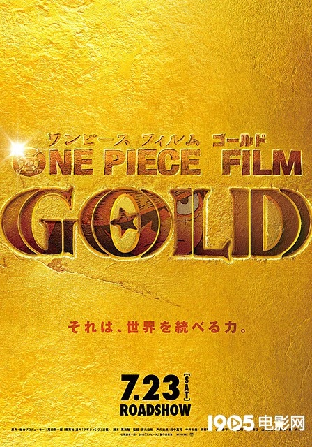 第十三部《海贼王》曝海报1905电影网讯 日本人气漫画《海贼王》第十三部剧场版敲定片名《ONE PIECE FILM GOLD》,并曝光首张黄金海报,确定将于2016年7月在日本上映。该片根据日本漫画家尾田荣一郎的人气漫画改编,这是该系列第13部剧场版,尾田确定担任总制片人。此外,TV动画系列第3代导演宫元宏彰担当影片的导演,日剧《推理要在晚餐后》、《欺诈游戏》等作品的剧本家黑岩勉担当剧本创作。曝光的海报以金色背景为主,大大的“GOLD”文字中,映现出主人公路飞的锐利眼神。下方一句“那是,统治世界的力量”意味深长,令海贼王的影迷们翘首期待。据悉,影片《ONE PIECE FILM GOLD》将于2016年7月23日在日本全国公映。