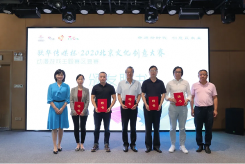 北京文化创意大赛组委会办公室联席主任高洁,北京首置文化科技发展有限公司副总经理李跃,北京市动漫游戏产业协会秘书长刘春刚等嘉宾和领导莅临本场比赛。