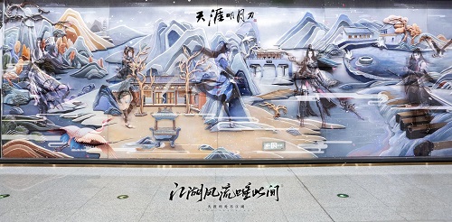 本次主题活动邀请了山西传媒学院设计系高教授进行艺术指导,创作产出一幅以“古晋阳八景”为原型,涵盖长城、太行山、黄河三大山西旅游名片的18米巨幅动态浮雕画卷,美轮美奂的雕塑肌理,灵动绰约的光影艺术,现代科技结合浮雕工艺,让“江湖太原”破壁而来。