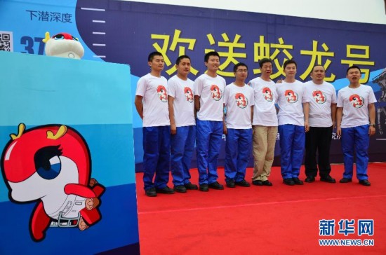 6月25日,身穿印有“蛟龙”号卡通形象“龙龙”T恤的3名潜航员唐嘉陵(右一)、叶聪(右二)、付文韬(右三)与工作人员在起航仪式上合影。当日,中国船舶重工集团在“蛟龙”号前往西北太平洋执行2014—2015年“蛟龙”号载人潜水器试验性应用航次的起航仪式上,正式发布了“蛟龙”号载人潜水器的卡通形象“龙龙”。“龙龙”已喷涂在“蛟龙”号船身上,并将伴随“蛟龙”号完成2014至2015年试验性应用航次。据介绍,“龙龙”以“蛟龙”号为原型,形似中国龙形象,其中保留了“蛟龙”号的观测窗、推进器等元素。 新华社发(陈剑 摄)[web_page] “蛟龙”号卡通形象“龙龙”(6月25日摄)。6月25日,中国船舶重工集团在“蛟龙”号前往西北太平洋执行2014—2015年“蛟龙”号载人潜水器试验性应用航次的起航仪式上,正式发布了“蛟龙”号载人潜水器的卡通形象“龙龙”。“龙龙”已喷涂在“蛟龙”号船身上,并将伴随“蛟龙”号完成2014至2015年试验性应用航次。据介绍,“龙龙”以“蛟龙”号为原型,形似中国龙形象,其中保留了“蛟龙”号的观测窗、推进器等元素。 新华社发(陈剑 摄)[web_page] 6月25日,“蛟龙”号总设计师徐芑南(右三)在印有“蛟龙”号卡通形象“龙龙”的旗帜上签名。当日,中国船舶重工集团在“蛟龙”号前往西北太平洋执行2014—2015年“蛟龙”号载人潜水器试验性应用航次的起航仪式上,正式发布了“蛟龙”号载人潜水器的卡通形象“龙龙”。“龙龙”已喷涂在“蛟龙”号船身上,并将伴随“蛟龙”号完成2014至2015年试验性应用航次。据介绍,“龙龙”以“蛟龙”号为原型,形似中国龙形象,其中保留了“蛟龙”号的观测窗、推进器等元素。 新华社发(陈剑 摄)[web_page] 喷涂在“蛟龙”号上的卡通形象“龙龙”(6月24日摄)。 6月25日,中国船舶重工集团在“蛟龙”号前往西北太平洋执行2014—2015年“蛟龙”号载人潜水器试验性应用航次的起航仪式上,正式发布了“蛟龙”号载人潜水器的卡通形象“龙龙”。“龙龙”已喷涂在“蛟龙”号船身上,并将伴随“蛟龙”号完成2014至2015年试验性应用航次。据介绍,“龙龙”以“蛟龙”号为原型,形似中国龙形象,其中保留了“蛟龙”号的观测窗、推进器等元素。 新华社发(陈剑 摄)[web_page]喷涂在“蛟龙”号上的卡通形象“龙龙” (6月24日摄)。6月25日,中国船舶重工集团在“蛟龙”号前往西北太平洋执行2014—2015年“蛟龙”号载人潜水器试验性应用航次的起航仪式上,正式发布了“蛟龙”号载人潜水器的卡通形象“龙龙”。“龙龙”已喷涂在“蛟龙”号船身上,并将伴随“蛟龙”号完成2014至2015年试验性应用航次。据介绍,“龙龙”以“蛟龙”号为原型,形似中国龙形象,其中保留了“蛟龙”号的观测窗、推进器等元素。 新华社发(陈剑 摄)[web_page]喷涂在“蛟龙”号上的卡通形象“龙龙” (6月24日摄)。6月25日,中国船舶重工集团在“蛟龙”号前往西北太平洋执行2014—2015年“蛟龙”号载人潜水器试验性应用航次的起航仪式上,正式发布了“蛟龙”号载人潜水器的卡通形象“龙龙”。“龙龙”已喷涂在“蛟龙”号船身上,并将伴随“蛟龙”号完成2014至2015年试验性应用航次。据介绍,“龙龙”以“蛟龙”号为原型,形似中国龙形象,其中保留了“蛟龙”号的观测窗、推进器等元素。 新华社发(陈剑 摄)[web_page]6月25日, 3名潜航员叶聪(左)、唐嘉陵(中)、付文韬(右)展示“蛟龙”号卡通形象“龙龙”玩偶和徽章。当日,中国船舶重工集团在“蛟龙”号前往西北太平洋执行2014—2015年“蛟龙”号载人潜水器试验性应用航次的起航仪式上,正式发布了“蛟龙”号载人潜水器的卡通形象“龙龙”。“龙龙”已喷涂在“蛟龙”号船身上,并将伴随“蛟龙”号完成2014至2015年试验性应用航次。据介绍,“龙龙”以“蛟龙”号为原型,形似中国龙形象,其中保留了“蛟龙”号的观测窗、推进器等元素。 新华社发(陈剑 摄)