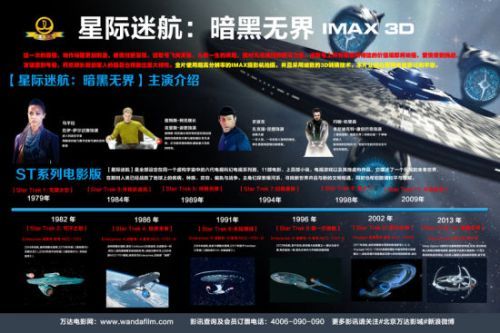 《星际迷航2》IMAX3D将启航2013年5月27日晚24:00,享誉全球的漫画改编系列科幻电影《星际迷航》的最新力作《星际迷航:暗黑无界》IMAX3D版将在北京万达影城各店(CBD万达广场店,石景山万达广场店,天通苑龙德广场店)同步启航,让各位翘首以盼的“星际迷”们率先领略这部欧美口碑常青的精彩巨制。为了让“星际迷”们感受到这部系列电影的怀旧氛围,也为了带领更多观众了解和回顾从1979年开始到2013年间12部“星际迷航”系列电影的人物关系和历史轨迹,北京万达影城特制作了大型专题“导航”在各店进行展示。当然,对于初次接触《星际迷航》系列的观众,这块万达影城独有的“星际导航”看板将为大家提供观影前必备的准备功课方便大家更清晰的把握电影脉络,享受影片带来的视觉冲击。为了让广大影迷享受到最震撼的视觉盛宴,万达影城专门安排了IMAX3D版的点映场,此场观众还可以享受到北京万达影城特别提供的专场优惠:储值卡会员和优享卡会员均可专享五折优惠。对于IMAX3D制式的大片,这无疑是广大影迷钱包的福音。三店点映场火爆抢购已经开启,来万达影城用最实惠的价格观看IMAX3D《星际迷航。暗黑无界》,在充满电影文化的氛围里先睹为快,感受无以伦比的科幻盛宴