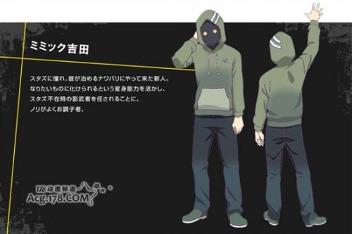 新公开人设的布拉德·T·丽兹是男主的妹妹,声优将由本作动画ED《BLOODY HOLIC》的演唱者南里侑香担当,而加入男主地盘的新人模仿秀的吉田则由山本和臣担当。而人造人帕普拉东·阿基姆则由老牌人气声优游佐浩二担当!