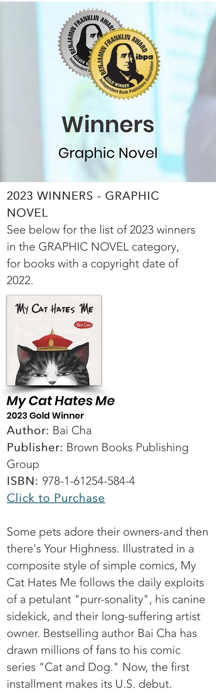 今年夏天,漫画家白茶的绘本《就喜欢你看不惯我又干不掉我的样子7》(以下简称《喜干》)在万千读者的期待中如约而至。10月19日,白茶携“吾皇猫”首次亮相第75届法兰克福书展,在中国联合展台与来自世界各地的读者面对面交流,引发了海外出版界的广泛关注和喜爱。同时,系列漫画第一册英文版(My Cat Hates Me)获得2023年独立图书出版商协会第35届年度IBPA本杰明·富兰克林奖“图像小说金奖”。