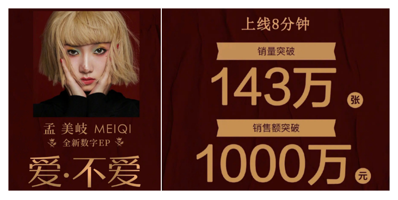 近日,孟美岐全新数字EP《爱·不爱》上线仅8分钟,销量就突破了143万张,销售额突破1000万元,还获得了BME音乐盛典年度优秀先锋女歌手大奖。新EP主打歌《Mute》更正面回应了出道以来面对的种种偏见和质疑,以极致鲜明的个性和态度硬刚争议。