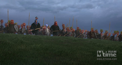 想想《勇敢的心》里,梅尔·吉布森喊出那一声振聋发聩的“freedom”,当餐桌上的火鸡们开始有了自由的向往,独立自主的意识,他们的反攻绝不逊于人类斗士。这两只从现代穿越回17世纪的火鸡带领它们的祖宗们以长矛傍身冲锋陷阵,与人类的枪口对抗。