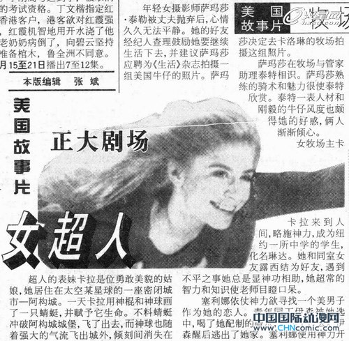 当年的《中国电视报》上刊登的《正大剧场》播出《女超人》的预告