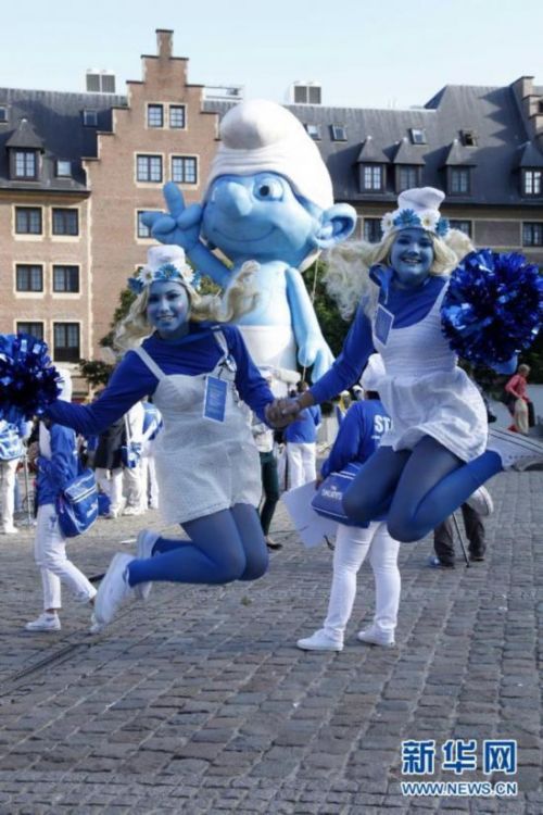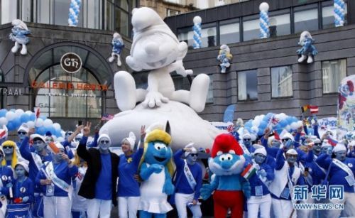 来自世界28个国家和地区的40名“蓝精灵”形象大使聚集到比利时首都布鲁塞尔。
