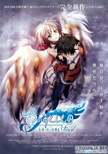 预计将在2014年4月26日于日本上映剧场版《天降之物Final:永远的我的鸟笼》(そらのおとしものFinal 永遠の私の鳥籠),公开了剧场版《天降之物Final》的最新预告CM,这一次看来真的是要完结!动画《天降之物》改编自水无月嵩于2007年开始在角川书店旗下的《月刊少年ACE》连载至今的漫画作品改编,于2009年-2010年推出了2季TV动画,并在2012年3月1日官网宣布决定制作第三季,但一直没有下文。这次的剧场版《天降之物Final》是完全新作的故事。《天降之物Final:永远的我的鸟笼》在线播放地址:http://movie.chncomic.com/show-1237.html【故事简介】居住在日本九州福冈县空美町里的男主角-樱井智树,以和平至上为座右铭,自小睡觉时偶尔梦见同一个梦:一个长了翅膀的女性向自己求救。然后有一天晚上遇到从天而降及自称是“娱乐形人造天使”的不明生物-伊卡洛斯,伊卡洛斯把降落后见到的第一位人类,也就是智树称呼为“主人”,自此两人同居在一起,开始智树的脱轨生活……
