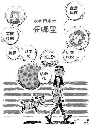 过去一年,传统漫画出版物销量下滑,部分刊物或停刊、或步履维艰。然而,网络漫画却迅猛崛起,特别是非专业漫画的大受好评让业界又燃起了新的希望。一边是数字动漫风声水起,中国移动手机动漫用户数突破1亿;另一边是传统漫画期刊和单行本的跳水式减量,成为整个行业不得不面对的心头之患。此消彼长间,中国漫画人得失几何?不久前,第八届中国漫画家大会在广州召开,作为国内唯一的漫画家行业峰会,中国以及来自韩国、比利时、法国、日本、马来西亚等多个国家和地区的动漫业领军人物,以“漫画这一年”为题,研讨原创漫画所面临的处境,共商互联网时代漫画的机遇和出路。漫画需要内涵与文化思考“社会在发展,它需要新的变化。有人在坚持传统,创作黑白漫画;有人紧跟潮流,大量购买小说版权、流水线式地生产改编漫画;也有些人在尝试探索机会,例如一些草根作者用自己独特的绘画和叙事方式在网络上收获了大批粉丝。”杭州夏天岛工作室总编辑姚非拉认为,过去一年是我国漫画行业转型的一年。这一年传统漫画出版物销量下滑,部分刊物或停刊、或步履维艰,甚至有不少漫画家搁笔,宣布短时间内不再创作。然而,网络漫画却迅猛崛起,特别是非专业漫画的大受好评让业界又燃起了新的希望。作为姚非拉口中“草根作者”的代表,网络漫画家丁一晨创作的原创漫画形象“丁小点”在微博上早已深入人心,其出版的绘本《毕业了,却开始怀念》销量十分可观。非美术专业出身的她,对于漫画创作有着自己的感悟:“发达的网络给我们草根作者提供了展示自己的平台,即使没有学过绘画,也可以用画笔分享自己的故事。相对于画工上的推敲,我更注重文字和语言的拿捏。我认为漫画就是用图形和文字相结合的方式讲故事给别人听。一个好的漫画家一定要多看小说、多看作品。”“漫画既是草根需求,也是文化大餐。”中国漫画家大会主席金城对丁一晨的观点表示肯定。他谈到,日本漫画近十年衰落的原因便是缺少了有文学性的漫画作品。而法国的漫画出版在全世界一枝独秀的根源,正是来自其漫画的文学性不断增强。法国亚欧洲际影视机构节目总监姚国强则认为漫画的内涵性十分重要:“漫画是灵魂的传达,不仅是讲故事,而且是讲哲学、讲人生。纵观欧洲这几年来获得大奖的作品,往往分量很重,既包括哲学层面的思考,也有着对人类历史和战争的思考。”凭借漫画《从小李到老李—一个中国人的一生》漫画三部曲,著名漫画家李昆武曾入围“漫画奥斯卡”法国昂古莱姆大奖、荣膺法国圣马洛图书展“最受读者欢迎奖”和“历史会晤”文化节最佳历史类漫画大奖。在本届漫画家大会上,李昆武谈到了自己继《小李到老李》之后的新作《春秀》,书中以漫画历史的生动与口述历史的直白,延续了《从小李到老李》中温和动人的力量,讲述了一个女人的一生,传达了“普通人的一生也是沉甸甸的一生”的意味。“这本书在法国出版后,很多法国读者都看得掉眼泪了,这让我认识到感情不分国界。”李昆武同时认为,我国的漫画题材可以放宽一些,不仅可以关注传统题材,更可以创作一些适合青年人的作品,拓展更多读者群,特别是成年人群体,这样中国漫画的前景才能宽阔。直面科技挑战寻求跨界双赢面对新技术的挑战,漫画人在充满危机的同时也保持着乐观心态。正如姚国强在会上所说:“技术和载体只是改变了一种阅读习惯,而内容将永存不朽。”金城则认为:“漫画本来就是天马行空、创意型的东西。从历史发展看,如果想取得当下的长足发展,需要跨界。”台湾动漫画推广协会理事长苏微希表示,相较于内地漫画的蓬勃发展和生命力,由于台港澳地区漫画产业有其各自的历史包袱和成长轨迹,所以在面对同样的市场变化时,这些地区的漫画作者面临的冲击更为巨大。“这些地区的漫画行业发展较为成熟,像成年人一样充满了经验和实力,但是面对变化的时候没有青少年来得灵活。”《老夫子》作者、著名漫画家王泽认为,面对新媒体时代的挑战,传统的漫画人没有必要作茧自缚。“画在纸上的是漫画,画在网络上的也是漫画。面对印刷品销量的下滑,漫画家不应该恐惧,也不应该悲伤,而是应该直面科技的挑战,借机突破过去传统的桎梏。”台湾漫画家阿推便是勇于突破传统框架的漫画人之一。他既创作漫画,又设计玩具,涉猎领域广泛。他认为,漫画家既是小说家,也是造型师、设计师,还可以是建筑师。“漫画不能停在原地,而是要延伸到各个领域。如果我们把想法延展成点、线、面,便有无限的可能性。”在我国澳门地区,传统漫画出版行业同样遭遇了寒冬。然而澳门漫画从业员协会会长黄天俊在进行市场调查后发现,虽然青少年一代不愿意花钱购买漫画类出版物,90%的书店已经不再出售漫画,但动漫周边产品,如玩具、手游等仍是他们的重要消费项目。因为任何周边产品的基础和核心仍是动漫作品,所以黄天俊认为,漫画创作仍然十分重要,只是这一行业要继续发展,必须转变经营模式。马来西亚平方漫画出版集团负责人执行董事饶正汉认为,由于纸媒的存储和销售都存在局限性,仅仅依靠销售纸质漫画出版物已经无法实现赢利。事实上,动漫的版权本身更加重要,因为动漫版权可以衍生出众多周边产品。在马来西亚,许多漫画和电子杂志都是免费的,