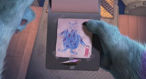从那个不会说话的阿布到了怪物世界,那个世界就一团混乱。原来怪物是怕小孩儿的!就像我们怕他们一样。在怪物的世界眼里,不长毛的人类就是会喷火、眼睛里放出镭射光、能把人——哦,不好意思是怪物一口咬死的大怪物!看到这里我真的忍俊不禁。以后我再也不怕恐怖片了!也许那些吐着舌头穿着白袍披着头发的鬼姐姐们也是出来吓唬我们这样的无知少年来赚钱的吧~我想贞子姐姐一定是鬼世界里排行榜上当之无愧的第一名!德拉库拉先生也许是个万人迷,无数的大小鬼儿守在他的楼下求一个珍贵的牙印儿