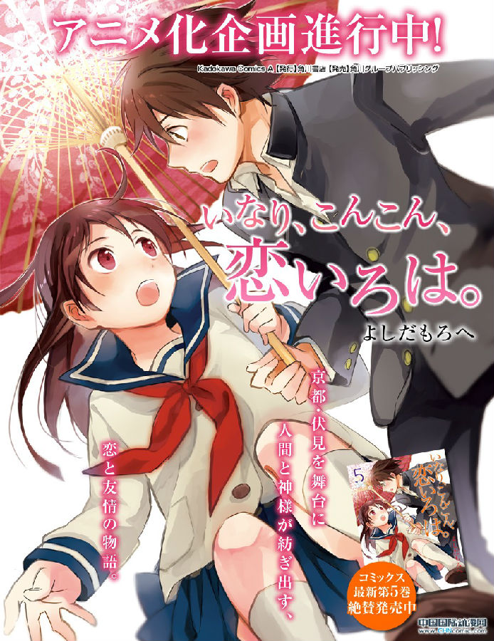 在9月7日于京都举办的「京都国际动漫祭2013」上,在去年就已宣布动画化企划进行中的《狐仙的恋爱入门(いなり、こんこん、恋いろは。)》(角川书店),正式敲定将于明年也就是2014年1月与大家见面,即《狐仙的恋爱入门》为2014年1月新番。