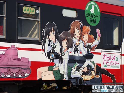 在文章的最后谈谈鹿岛临海铁路上涂有《少女与战车》图案的火车。这次合作是由动画的制作委员会参加企业万代视觉公司提出的。目的是通过火车为动画做广告。