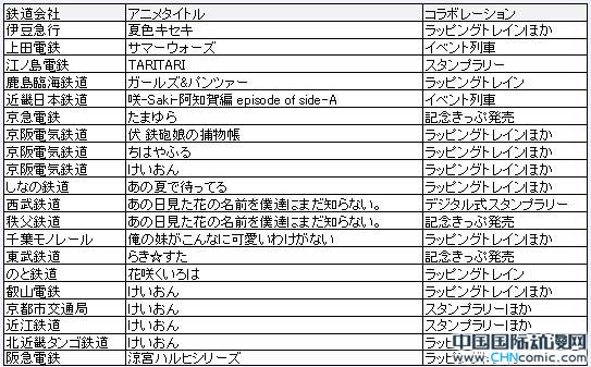 还调查了其他一些例子,日本有18个铁路公司和15部动画合作: