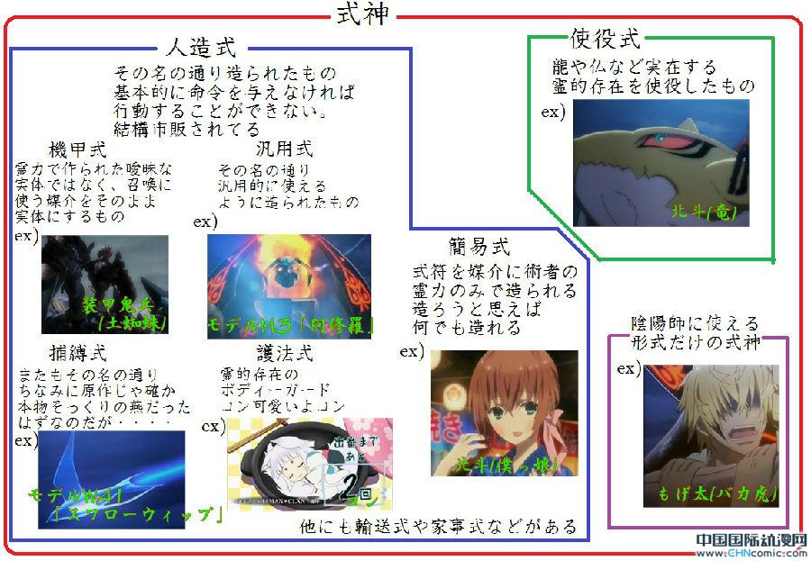 幸好有一位日本网友制作了一张用来说明《东京暗鸦》式神的简图。而且里面使用的主要是汉字,不认识日文的读者也可以在小编的说明下,来轻松地了解《东京暗鸦》中的各种式神: