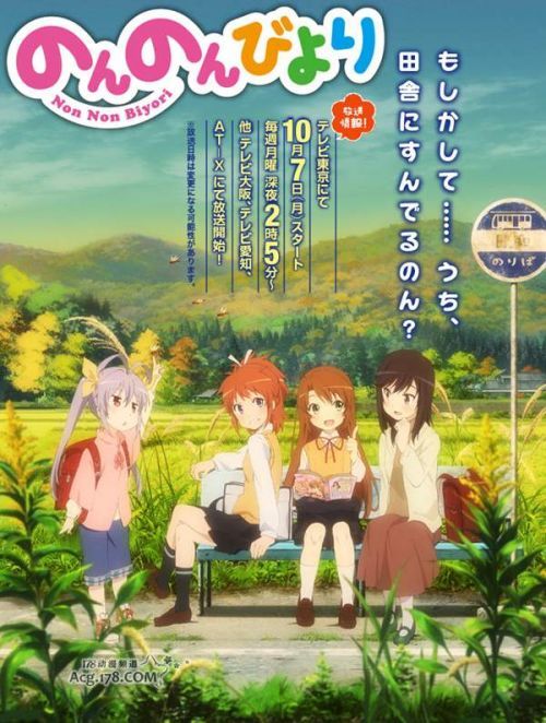 动画《悠哉日常大王》改编自日本漫画家あっと绘制的同名日常系同名漫画,动画由SILVERLINK.负责,美术是知名的动画公司草薙,监督是演出和分镜脚本出身的川面真也担当,脚本和系列构成有吉田玲子、志茂文彦等人,声优汇聚了村川梨衣、小岩井小鸟、佐仓绫音、阿澄佳奈,故事描写由于父母的工作关系而迁居而来的一条萤和越谷姐妹、宫内兄妹等人的日常生活。舞台是一个到处竖着“注意牛过路”的指示牌,巴士不等五个小时不会来的乡下地方。