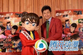 而三浦在录音的时候,身披与鲁邦一样的红色夹克,看起来斗志昂扬。在拍摄照片时,同样穿着红色夹克的特别版名侦探柯南也杀了出来,与他进行了一场出乎意料的鲁邦服装对决。