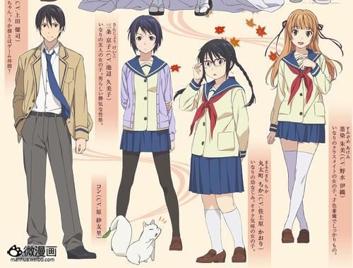 即将在2014年1月播出的TV动画「稻荷恋之歌」继公开制作阵容、声优及OP/ED曲情报后,今日「稻荷恋之歌」官网公开详细动画人设图。《稻荷恋之歌》在线播放地址:http://movie.chncomic.com/show-1050.html 动画「稻荷恋之歌」改编自日本漫画家よしだもろへ自2010年8月号起开始在角川书店旗下漫画杂志「YOUNG ACE」上连载至今的恋爱喜剧类漫画。本作以京都为舞台,主要描写了在京都伏见生活、对同班同学丹波桥单恋着的女中学生伏见伊奈里和宇迦之御魂大神(稻荷神)邂逅之后的故事,为报答伏见伊奈里救了幼狐之恩,宇迦之御魂大神阴差阳错之下给了伊奈里变身的能力,交织着人类与狐仙之间友情与爱情的故事由此开始。【人设图】 伏见伊奈里:大空直美本作主角,就读国中2年级。个性少根筋,行动也很笨拙,但个性开朗、温柔。家里附近有间神社,从小就相信神明存在。单恋同学红司。 丹波桥红司:冈本宽志篮球社社员,伊奈里的同学与单恋对象。待人温柔,让他广受大家喜爱。父亲已过世,和母亲、弟弟住在一起。[web_page] 御魂神:桑岛法子伊奈里神社供奉的谷物女神,昵称为宇迦大人,人们则称呼她为稻荷神。对从小相信神明存在的伊奈里特别照顾。为了感谢伊奈里救了小狐狸,实现了伊奈里的愿望。对电玩游戏很着迷,并很喜欢动漫人物。因为哥哥大年神的溺爱程度太过火而处处避着他,在自己的神社布下结界,拒绝和他会面,感觉到他的神气时会企图逃走。很喜欢人类。胸部很大。 三条京子:池边久美子伊奈里的青梅竹马,也是她的同学。本名是三条京子。留着男性化短发,右眼下方有颗痣。平时很冷静,看到伊奈里搞砸时候会很焦躁,但在重要时刻都会出手帮忙。 丸太町千花:佐土原薰伊奈里的青梅竹马,也是她的同学。姓“丸太町”,身材有点肉,戴着眼镜,而且是个御宅族。认为伊奈里的天然呆很萌。[web_page] 墨染朱美:野水伊织伊奈里的同学。才色兼备的少女,很受男生欢迎。小丸把她叫做“藤草国中的偶像”。成绩很好,在班上的地位类似班长。 伏见灯日:上田耀司伊奈里的哥哥,高中生。灵感很强,能看到神明。因为过去发生的事情让他变的很讨厌宇迦之御魂大神。所有的家人都认为他有中二病。头脑很好,在全国模拟考排名很前面。【STAFF】监督:高桥亨助监督:冈本英树系列构成:待田堂子人物设计?总作画监督:高品有佳主要作画:沈宏道具设计:奥田万里色彩设计:大内绫美术监督:大西穣美术设定:坂本龙撮影监督:津田凉介编集:西山茂音响监督:たなかかずや音响効果:出云范子音响制作:DAX Production音乐:妹尾武音乐制作:flying DOG动画制作:プロダクションアイムズ制作:稻荷恋之歌制作委员会【CAST】伏见伊奈里:大空直美御魂神:桑岛法子丹波桥红司:冈本宽志墨染朱美:野水伊织丸太町千花:佐土原薰伏见灯日:上田耀司三条京子:池边久美子【主题歌】OP:May'n 《今日的恋色》ED:坂本真綾 《SAVED》