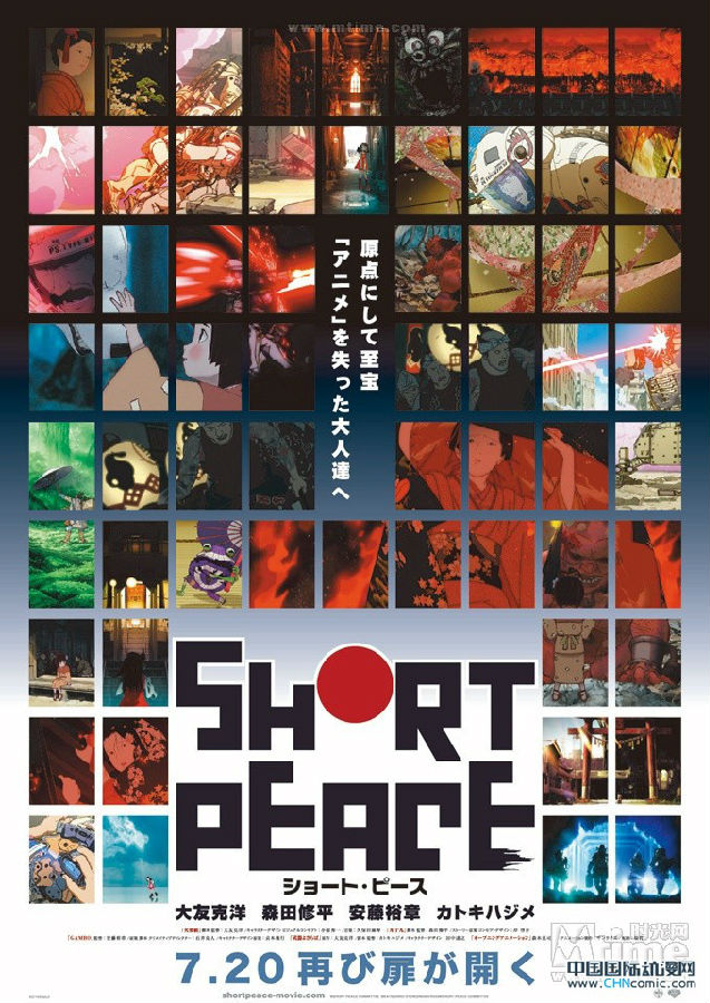 汇集日本顶级动画制作卡司,由大友克洋、森田修平、安藤裕章、角木肇四位导演执导的动画短片作品集《短暂和平》(Short Peace),这也是大友克洋导演自从《蒸汽男孩》九年后再度将动画作品搬上大银幕。日前,本片放出首支先行版预告片,虽然预告片只有34秒的画面,却显出了精良的制作和细致华丽的画风,而影片中发生在不同时代的故事更是让人期待。