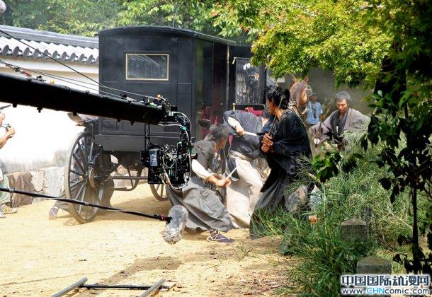 这次公开的是《浪客剑心》原作中濑田宗次郎在纪尾井坂暗杀大久保利通的现场拍摄照片。这段场景是于今年9月13日在日本姬路的好古园所拍摄。