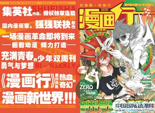 由日本集英社支持,《周刊少年JUMP》编辑部指导,杭州翻翻动漫打造的少年向漫画杂志《漫画行》预计将于2014年2月发行!除了国内原创漫画作品,还将和《少年JUMP》同步连载集英社人气漫画!《海贼王》《家庭教师reborn》《游戏王》等都在备选名单! 《漫画行》从纸张、印刷、包装到内容的挑选、审核均按照国际标准,为中国优秀漫画家提供一个高品质的刊登平台的同时,也为中国原创漫画作者和作品迅速而顺利的输出提供了良好的渠道.
