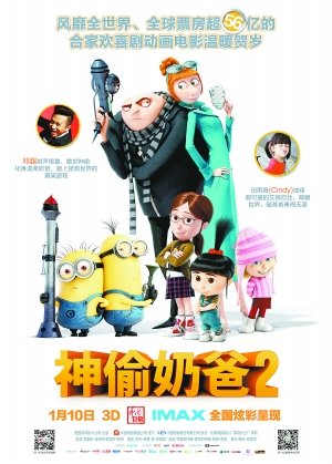 由环球影片出品的3D合家欢动画大片《神偷奶爸2》日前正在全国各大影院热映。据了解,该片上映四日,票房便强势破亿,成为2014年首部过亿的影片。