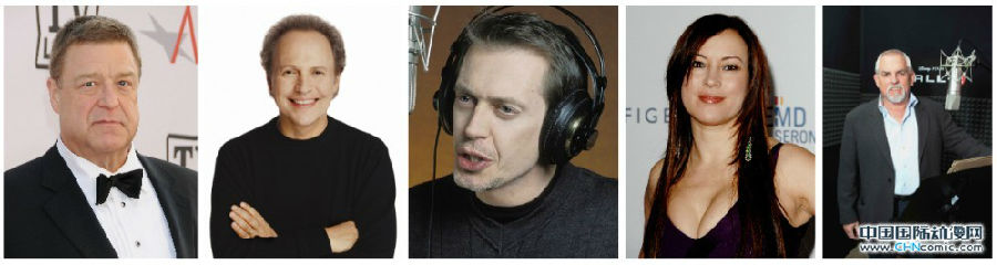 从左到右:John Goodman、Billy Crystal、Steve Buscemi、Jennifer Tilly、John Ratzenberger