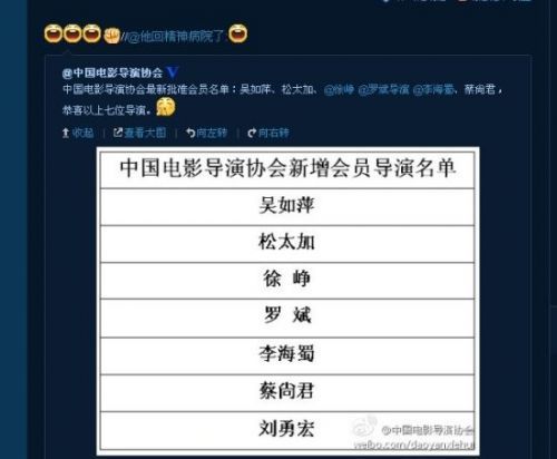 日前,凭借首部执导电影作品《泰囧》创造华语电影史上众多奇迹之后,徐峥[微博]当之无愧成了国内最具票房号召力的电影导演之一。而在近日公布的中国电影导演协会最新批准会员名单中,徐峥也入选该榜单,成为导演协会正式成员,获得业内同行的认可与肯定。